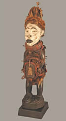 Wood, cloth, feathers, ritual materials, bush rope, animal fur, glass, and nails