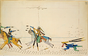 Howling Wolf Fighting Soldiers, Oberlin Ledger p.38, 1874-75