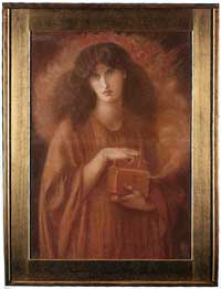 Dante Gabrielle Rossetti used Jane Morris Standing, in Marquee as the basis for a famous set of paintings and drawings illustrating the story of Pandora. In Greek mythology, Pandora (meaning, "all gifted") was the first woman on Earth, created by Zeus to plague mankind. The gods gave on her such gifts as beauty and charm but also great curiosity. Zeus, seeking to punish man for accepting the gift of fire that Prometheus stole from heaven, gave Pandora a box containing all the troubles that the world now knows. She was warned not to open the box, but her curiosity overcame her. Only Hope remained inside the box as she quickly closed the lid again. In 1870 Rossetti also wrote a poem (below) that complemented his images of Pandora.