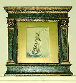 The AMAM's photograph depicts Jane Morris leaning against a support pole in a large outdoor tent in Rossetti1s garden. Rossetti, who was known to add paint to photographs to enhance their appearance, most likely did the slight re-touching that is evident in Morris' face. The image is enclosed in a frame, the style of which recalls a 15th century Venetian tabernacle. Both the photograph and the frame exemplify the tastes of the Pre-Raphaelite movement, a group of English artists (led by Rossetti) who wanted to recapture the simplicity and realism of early Italian art.