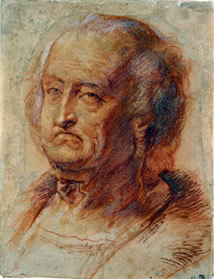 Rubens's Head of an Old Man was undoubtedly produced within this context. The drawing is generally thought to date from about 1600-1605, during the artist's early years in Italy, a time when he was studying and copying earlier works of art not only to hone his skills as a draftsman and artist, but to record the works of Italian masters for future reference in the studio.2 The Oberlin sheet bears a close technical and stylistic relationship to at least two other studies of old men's heads from this period: the Profile Head of an Old Man ("Niccolò da Uzzano") in the Pierpont Morgan Library;3 and a Head of an Old Man in the Rubenshuis, Antwerp.4 All three drawings have been connected--directly or indirectly--with Leonardo da Vinci's physiognomic studies of old men. Rubens apparently saw a number of Leonardo's physiognomic and anatomical studies in the collection of the sculptor Pompeo Leoni (ca. 1533-1608) while he was in Rome.5 The objective description of wrinkled flesh, grizzled hair, and toothless mouth in the Oberlin drawing (and in the other sheets cited above) was clearly inspired by Leonardo's probing examinations of aging features and sagging flesh. The Oberlin sheet most closely resembles Leonardo's study of the head of an old man of about 1511, in the Royal Collection, Windsor Castle.6 There is some question as to the exact relationship of the Oberlin sheet to sixteenth-century drawings by Leonardo and others. In addition to making copies, Rubens is known to have restored, retouched, and reworked original drawings by other artists.7 For example, a sixteenth-century Italian anatomical study of arms done in red chalk was extensively reworked by Rubens in brush and ink to impose his preference for exaggerated musculature.8 While most authors have identified the Oberlin Head of an Old Man as a work wholly by Rubens's hand, inspired by Leonardo's physiognomic studies (or perhaps a direct copy after a lost work), more recently Anne-Marie Logan has suggested that this sheet demonstrates Rubens's complete reworking of a sixteenth-century Italian drawing.9 She describes both the Oberlin and Morgan drawings as "portrait drawings, which he also reworked with the brush and red ink most likely during his stay in Italy," and terms the former work a "sixteenth-century Italian study of an Old Man which Rubens reworked."10