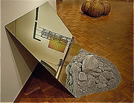 Slant Piece is a reconstruction of a Mirror Displacement piece from Smithson's Cayuga Salt Mine Project of 1968-69.