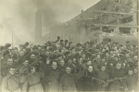 Georgy Zelma (Russian, 1906 - 1984) Victorious Russian Soldiers, Stalingrad, c. 1942 Gelatin silver print Image: 7 5/16 x 10 7/8 in. (186 x 276 mm) Mount: 11 1/2 x 16 1/8 in. (292 x 410 mm) Gift of Charles Isaacs and Carol Nigro AMAM 1998.17.2
