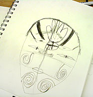 - Transfer final sketch from sketchbook onto plastic mask using a dry erase marker. (using this type of marker allows the student to simply erase errors by rubbing off the mistake, however, students must be careful not to erase lines they wish to keep!)