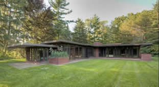 The Weltzheimer/Johnson House at Oberlin College is a Frank Lloyd Wright Usonian House situated several blocks from campus. Designed in 1947 and completed in 1949, it is the first Usonian house in Ohio and one of the few in the nation open to the public. The Weltzheimer/Johnson House stands as another expression of Wright's answer to the demand for beautiful and affordable middle-class homes in the post WWII America. Pairing innovation with basic owner-builder construction materials and techniques, the concepts of organic architecture evolved into these Usonian characteristics: a flowing floor plan with distinct public and private wings; concrete, grid patterned, slab floor with radiant heat; flat roof and cantilevered carport; masonry fireplace mass; board and batten walls with simple built-in furniture; and tall glass walls and doors opening to the landscape. The Weltzheimer/Johnson House uses brick masonry and redwood and has several distinctive features, including the hundreds of balls forming the roof dentil ornamentation whose circular motif is echoed in the perforated boards of the clerestory, and the interior brick columns that separate the workspace from the living room. The Weltzheimer family lived in the house until 1963 when the property was sold to developers and "remodeling" efforts scarred the space. However, in 1968, Art History Professor Ellen H. Johnson purchased the home and began the restoration process. In 1992 at her death, the house was given to the Oberlin College Art Department and Allen Memorial Art Museum. The house is now open to the public for tours and programs. Literature: Frank Lloyd Wright at Oberlin: The Story of the Welzheimer/Johnson House, Allen Memorial Art Museum Bulletin 49, no. 1 (1995), is available at the Weltzheimer/Johnson House during tour hours. Bulletin is $12 per copy. |