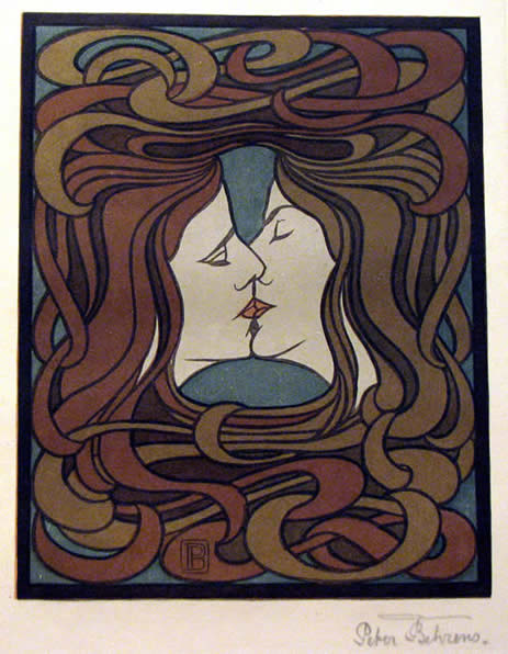 Peter Behrens (German, 1868 - 1940) Kopfe (Kussende), 1898 Color woodcut Overall: 10 3/4 x 8 7/16 in. (27.3 x 21.5 cm) Charles F. Olney Fund, 1959 AMAM 1959.107