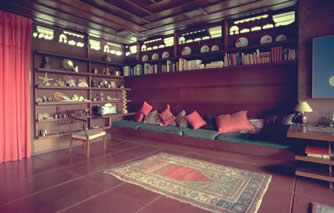 The Weltzheimer/Johnson House at Oberlin College is a Frank Lloyd Wright Usonian House situated several blocks from campus. Designed in 1947 and completed in 1949, it is the first Usonian house in Ohio and one of the few in the nation open to the public. The Weltzheimer/Johnson House stands as another expression of Wright's answer to the demand for beautiful and affordable middle-class homes in the post WWII America. Pairing innovation with basic owner-builder construction materials and techniques, the concepts of organic architecture evolved into these Usonian characteristics: a flowing floor plan with distinct public and private wings; concrete, grid patterned, slab floor with radiant heat; flat roof and cantilevered carport; masonry fireplace mass; board and batten walls with simple built-in furniture; and tall glass walls and doors opening to the landscape. The Weltzheimer/Johnson House uses brick masonry and redwood and has several distinctive features, including the hundreds of balls forming the roof dentil ornamentation whose circular motif is echoed in the perforated boards of the clerestory, and the interior brick columns that separate the workspace from the living room. The Weltzheimer family lived in the house until 1963 when the property was sold to developers and "remodeling" efforts scarred the space. However, in 1968, Art History Professor Ellen H. Johnson purchased the home and began the restoration process. In 1992 at her death, the house was given to the Oberlin College Art Department and Allen Memorial Art Museum. The house is now open to the public for tours and programs. Literature: Frank Lloyd Wright at Oberlin: The Story of the Welzheimer/Johnson House, Allen Memorial Art Museum Bulletin 49, no. 1 (1995), is available at the Weltzheimer/Johnson House during tour hours. Bulletin is $12 per copy. |