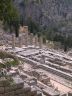 Delphi: site view from NW.: Theatre of Apollo [foreground], mid-4th century B.C.; Temple of Apollo [C.], orig. mid-6th century B.C. (rebuilt 366-326 B.C.)