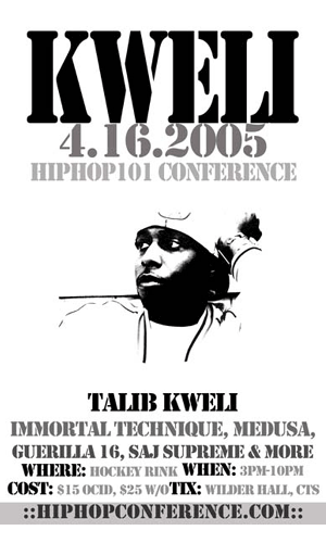 Kweli Poster, Designed by Sadye Vassil, Hip Hop Conference 2005.